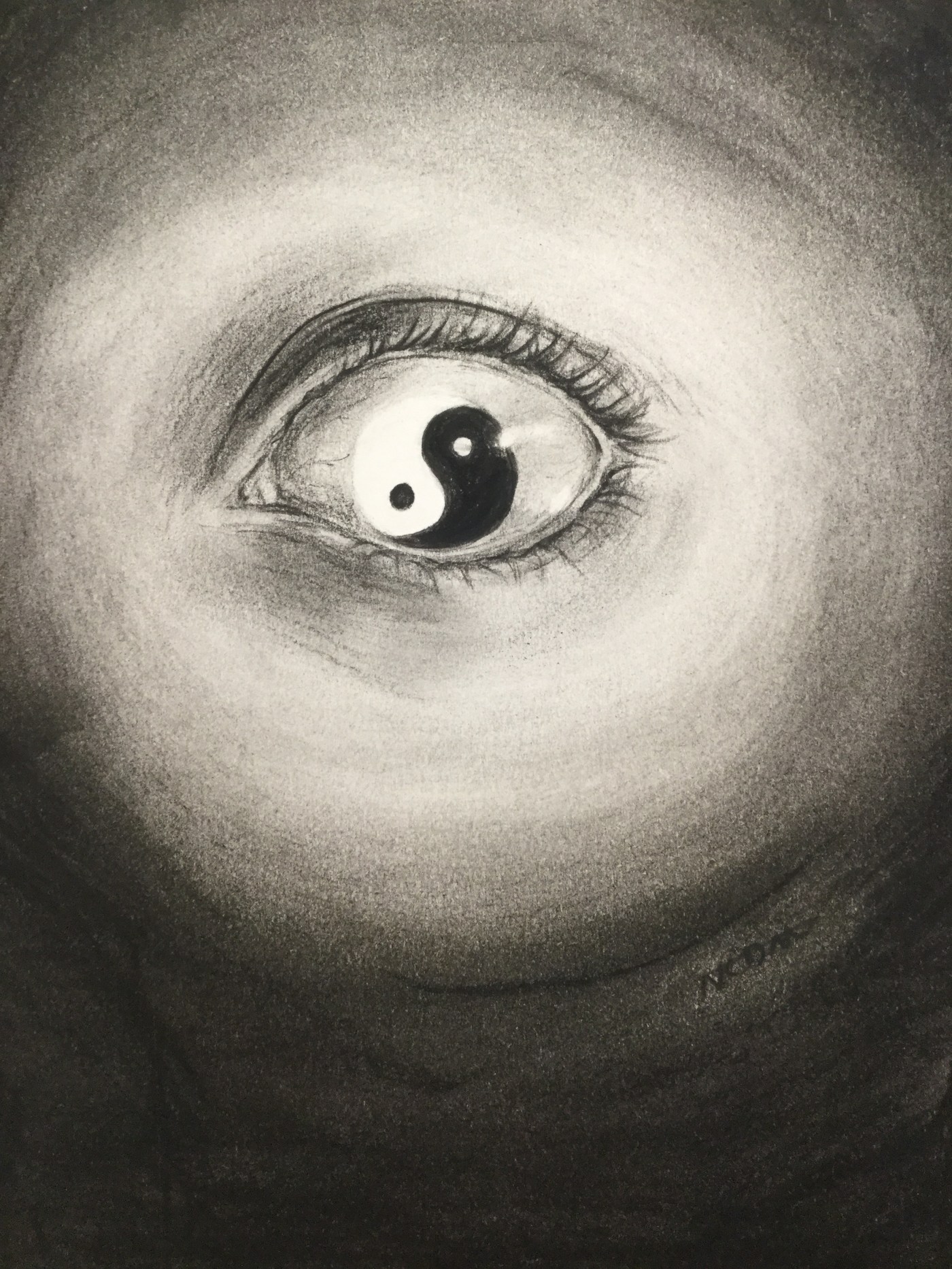 Many moments we experience rely on the balance created by opposites: our sight is made possible by light and shadow interacting with each other. Like the Yin/Yang symbol, we, as people, have seeds inside us that belong to one another–and perhaps we share these seeds by embracing our interacting polarities, our Yin and Yang.