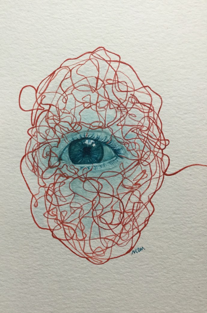 Premature Weariness: Study of the Left Eye of Klimt’s “Head of an Old Woman” Ink on paper 85 days done, 280 to go.