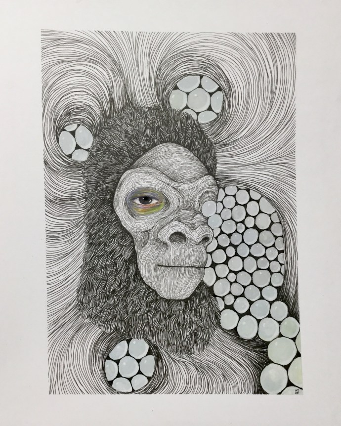 In Responce to Fear: Inspired by Zora Neale Hurston’s Quote “The thing to do is to grab the broom of anger and drive off the beast of fear.” Ink on paper A year ago, I first met Zora Neale Hurston tucked away on a bookshelf. Their Eyes Were Watching God stared at me, making me…