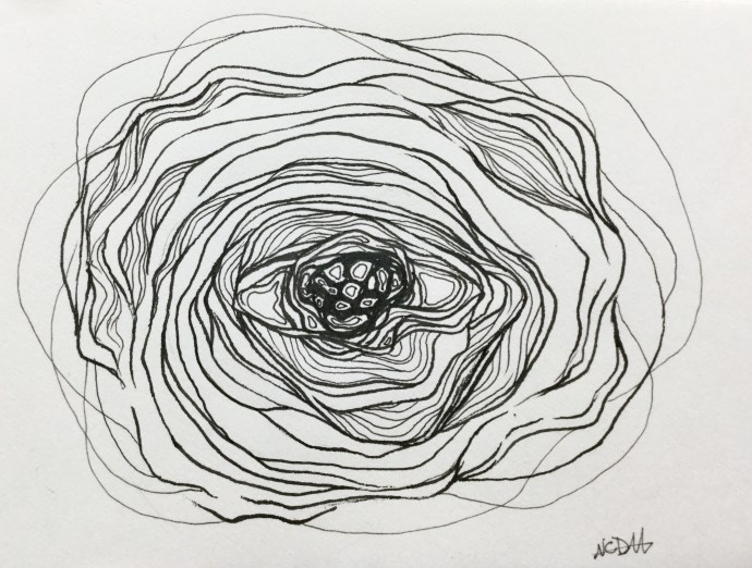 Inspired by the Reflection from the Bottom of My Water-glass Ink on paper 186 days done, 179 to go.