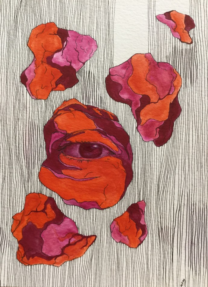 Bystander: Critical and Rose Fungus Watercolor and ink on paper 116 days done, 249 to go.