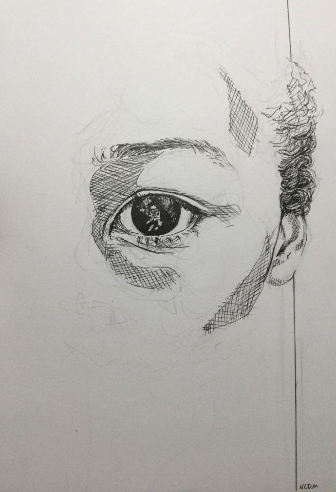 Double Take: The Left Eye From Aubrey Beardsley’s “Count Valmont” Ink on paper 71 days done, 294 to go.