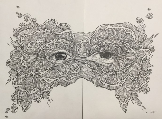 Within the CognEYEzant project are works that belong together: fit into a larger whole. This is the second. “Two Parts To a Whole” is a series of drawings–they come in pairs. “#2 Stay Inside” was inspired by the changing seasons. The autumnal withering brings about a craving for the within, both mentally and physically. Yet…