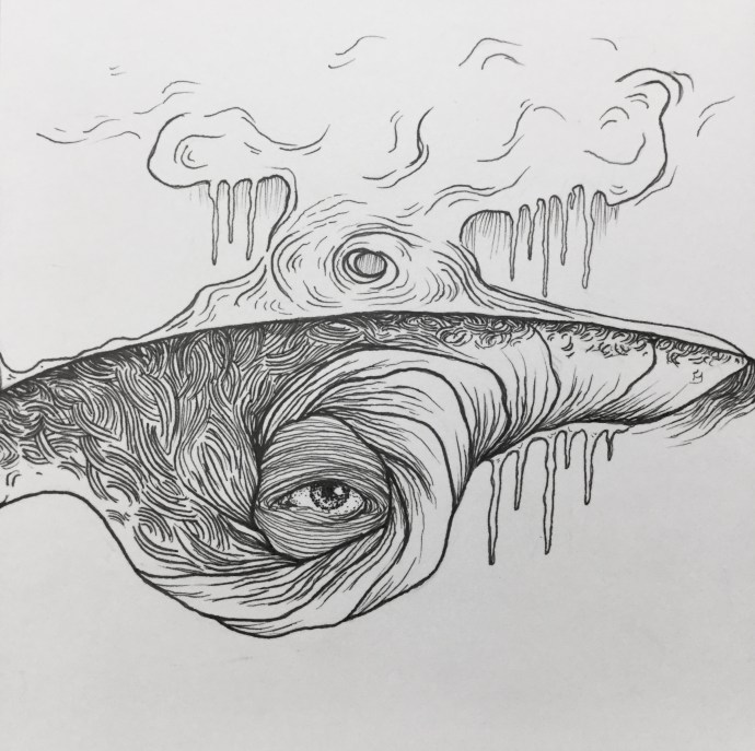 In Which A Story Unfolds: Chapter Nine* Ink on paper This story belongs with preceding posts, read it in chronological order here. She walked from one end of the land to the other. As her steps accumulated, clouds collected around her. The wind blew harsh and loud, beating at her body. The water rose and…